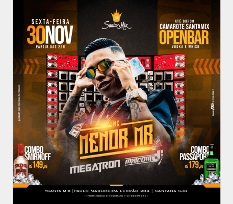 Dia 30 de Novembro tem Mc Menor MR, Megatron, Dj Helan e Maicon Dj no Santa Mix em São José dos Campos, SP!